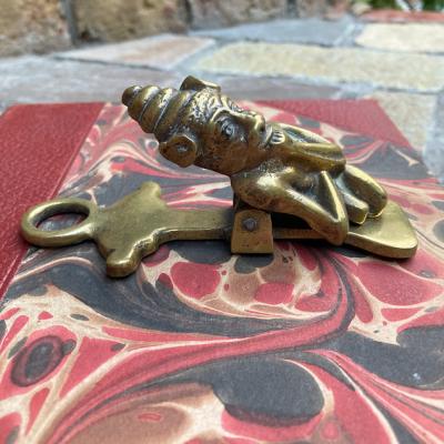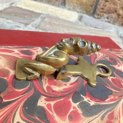ユーモラスなモチーフの真鍮レターホルダー。年代不詳。謎のモチーフではありますが、思わず笑みがこぼれますね!雰囲気を残すためピカピカには磨いておりません。文房具好きな方、印象的な店舗什器などをお探しの方のギフトにいかがでしょうか。クリップの強度はそこまで強くないので、平らな面に置いてカードや紙を挟む使い方が良さそうです。福岡市南区の店舗にてお渡しもできますのでお気軽にどうぞ!