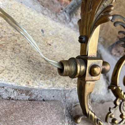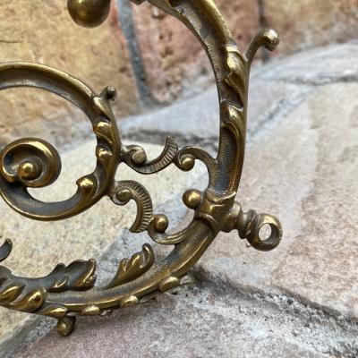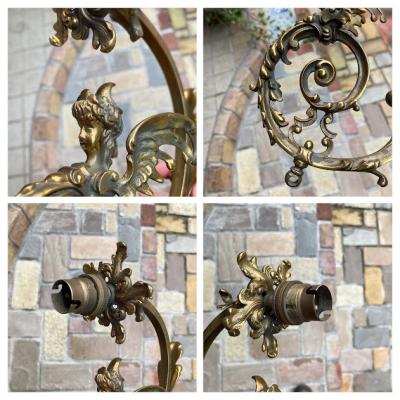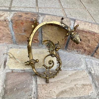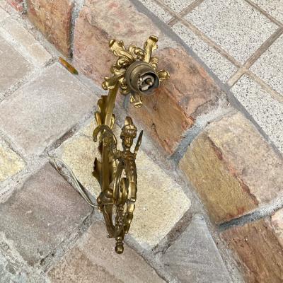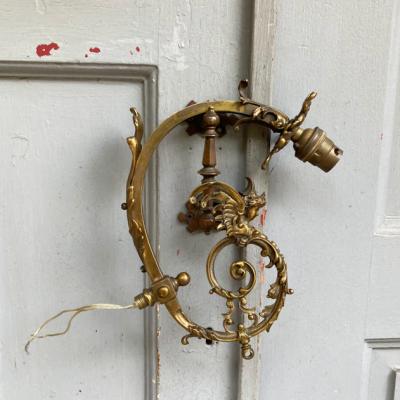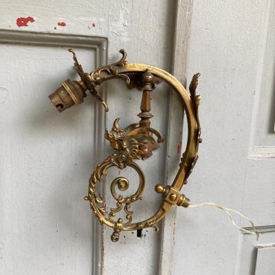 エンジェルモチーフのシャンデリアパーツ。真鍮で元はかなり大きなシャンデリアであったと推察されます。フランス製。立体的な装飾のシルエットが美しく、ちょっとしたお部屋のアクセントになりそうですね。先端に海外仕様のピン式のソケットと使用されていたコードがそのまま付属しています。点灯確認などは行っておりませんので、照明としてご利用の場合は新しいコードに交換するなどご自身で行ってください。電球のソケットの部分が回転するので外せそうですが、破損を考慮し取り外しは行っておりません。コードが出ているネジ式の部分とサイズが合うネジやアダプターがあれば、オリジナルの照明が造れそうです。オリジナルの照明を作ってみたい方や、翼を広げた天使のシルエットを飾ってみたい方におすすめ。雰囲気を残すため軽く拭き上げるのみ行いました。ピカピカの新品をお求めの方はご遠慮ください。福岡市南区の店舗にてお渡しもできますのでお気軽にどうぞ!