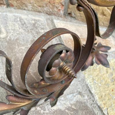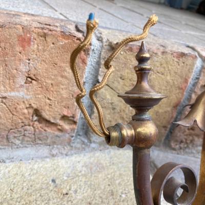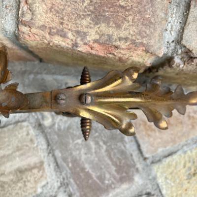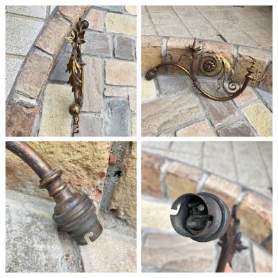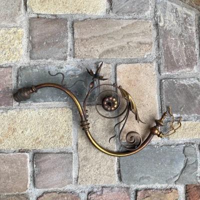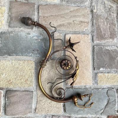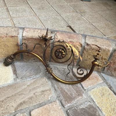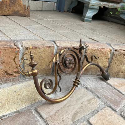 植物をモチーフに使い曲線が美しい佇まいの照明パーツ。フランス製。アールヌーボーを思わせる雰囲気がお部屋のアクセントになりそうですね。先端に海外仕様のピン式のソケットと使用されていたコードがそのまま付属しています。点灯確認などは行っておりませんので、照明としてご利用の場合は新しいコードに交換するなどご自身で行ってください。電球のソケットの部分が回転するので外せそうですが、破損を考慮し取り外しは行っておりません。コードが出ているネジ式の部分とサイズが合うネジやアダプターがあれば、オリジナルの照明が造れそうです。オリジナルの照明を作ってみたい方、店舗の壁面アクセントなどをお探しの方におすすめ。雰囲気を残すため軽く拭き上げるのみ行いました。ピカピカの新品をお求めの方はご遠慮ください。福岡市南区の店舗にてお渡しもできますのでお気軽にどうぞ!