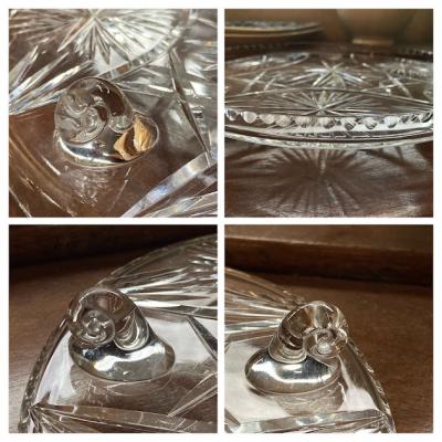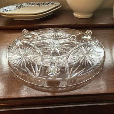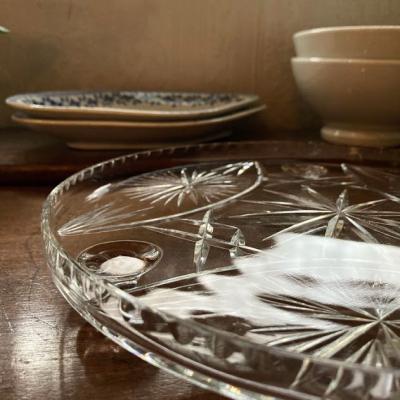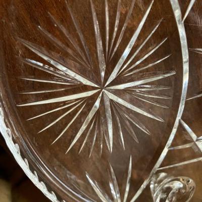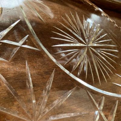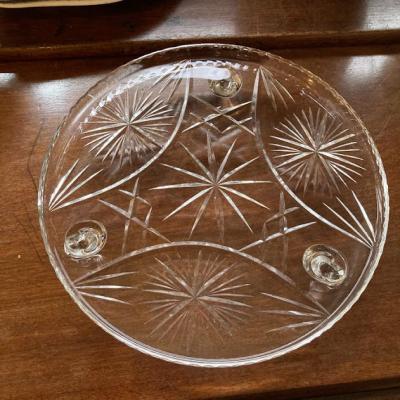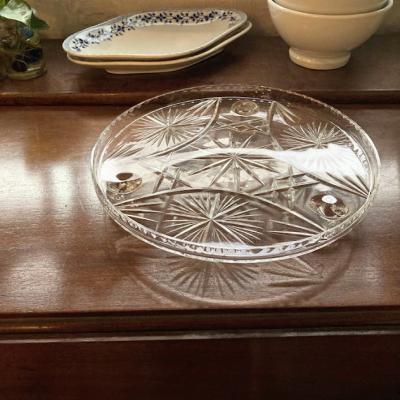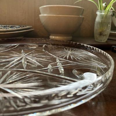 くるんと丸い3つの脚で支えるガラストレイ。表面はツルツルですが、裏面にカットが施してあるため、光の反射でキラキラときらめきます。周りには高さ1.5㎝ほどのフチがあり、落ちる心配がないのはうれしいですね。お菓子や、アクセサリー、季節のお花などお気に入りの物をディスプレイできます。光が差し込む窓辺の近くだと、ガラスが綺麗に見えますよ。お店のディスプレイや、お部屋のインテリアをお探しの方におすすめ。福岡市南区の店舗にてお渡しもできますのでお気軽にどうぞ!