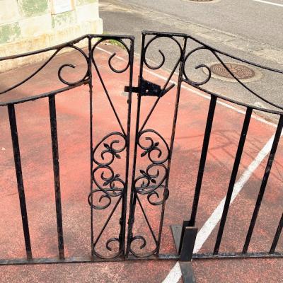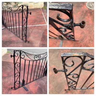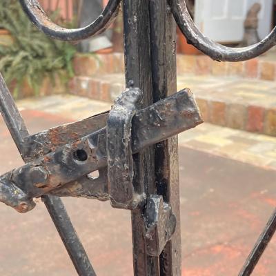 お庭や玄関を華やかにしてくれる両開きのアイアンゲート。左右には固定用の穴の付いたパーツが付属。ペイントの剥がれやサビを含みますが、時代を経た独特の存在感を創り出してくれますよ。中心と下の方に2か所ある鍵は可動します。つるバラなどを這わせても素敵ですね。取り付けにつきましてはご自身の契約している工務店様にお問い合わせください。撮影に使用したスタンドは付属しません。スタンドが必要な方には、別途オーダー(1~2週間)で作成できますのでお気軽にお問合せください。福岡市南区の店舗にてお渡しもできますのでお気軽にどうぞ!