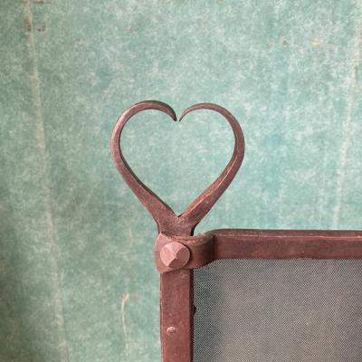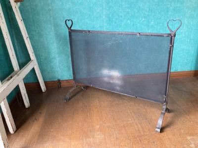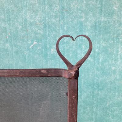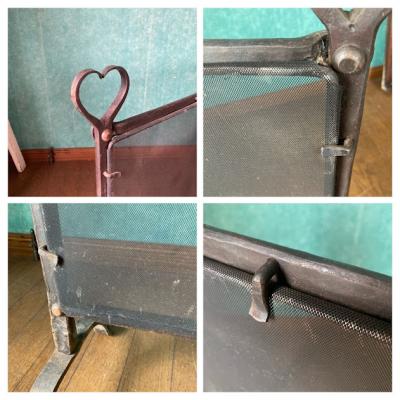 アイアンで造られたハートの持ち手が可愛らしいファイヤースクリーン。暖炉の前で火の粉が当たらないようにしたり、夏に暖炉を使用しない時には目隠しなどに使用されていたそうです。現代では、パーテーションなお店のディスプレイに活用できそうですね!フェンスのネット部分にはうっすらと傷や跡、アイアン部分には時代を感じるサビなどを含みます。アイアンのゴツイ素材感とハートのモチーフのギャップにピンときた方におすすめ。フランス製。年代不詳。福岡市南区の店舗にてお渡しもできますのでお気軽にどうぞ!