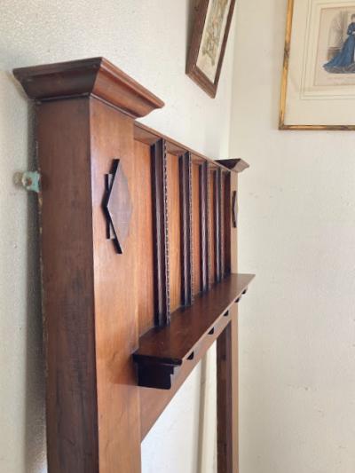 シンプルなデザインが上品な印象を与えてくれるマホガニーのファイヤープレイス。イギリス製。推定1930年代。壁に設置するだけで、ヨーロッパのような空間を演出することができます。出っ張りが少なくお部屋を圧迫しないのもいいですね。左右4か所に固定用のパーツが付属していました。アンティーク特有の小さな傷や凹みを含みます。シンプルながらもお部屋を彩るパーツをお探しの方におすすめ。ピカピカの新品をお求めの方はご遠慮ください。福岡市南区の店舗にてお渡しもできますのでお気軽にどうぞ!