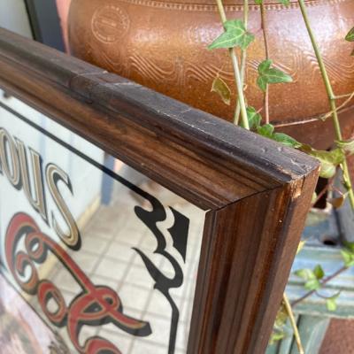 パブで実際に使用されていた大きな鏡です。推定1960年代とのこと。カフェやバー、レストランなどの飲食店の壁面を飾るアクセントにおすすめです。裏面を固定する小さなパーツで数か所外れていた部分は、イギリスの小さな釘で補修済み。フレーム部分に小さな傷を含みます。福岡市南区の店舗にてお渡しもできますのでお気軽にどうぞ!