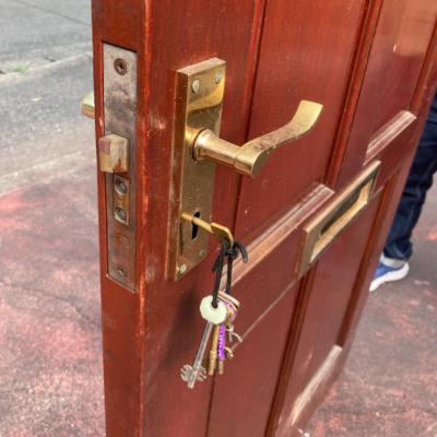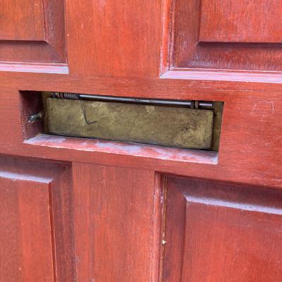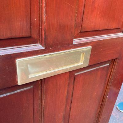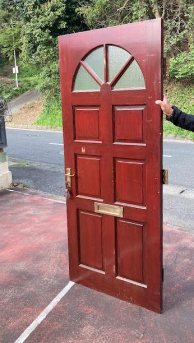 イギリスで使用されていたシンプルな木製ドア。レターボックス、ドアチェーン用パーツ、専用の鍵などが付属しています。ドア表面に小さな傷を含みますがガラス部分にはダメージもなく、まだまだ現役で使用できそうです。リフォームやリノベーションにご利用の場合は、ご自身の契約されている施工業者さまにお問合せください。福岡市南区の店舗にてお渡しもできますのでお気軽にどうぞ!