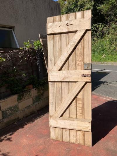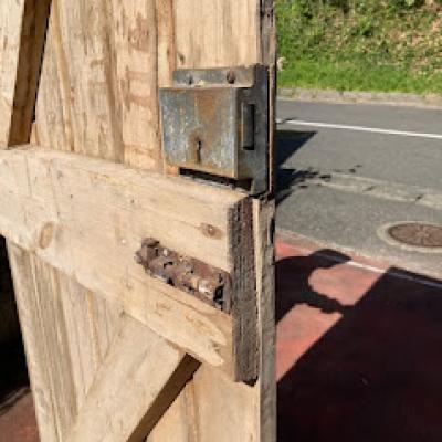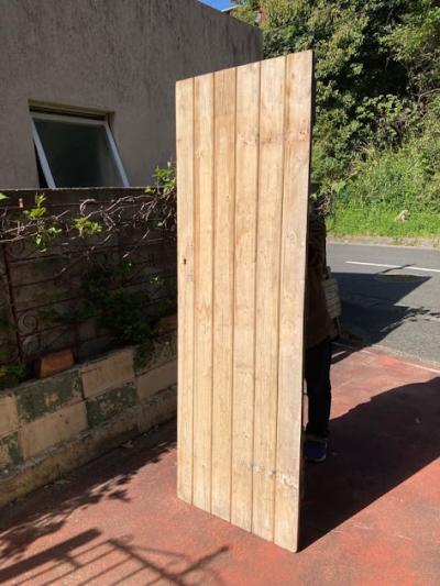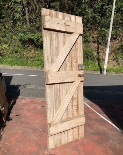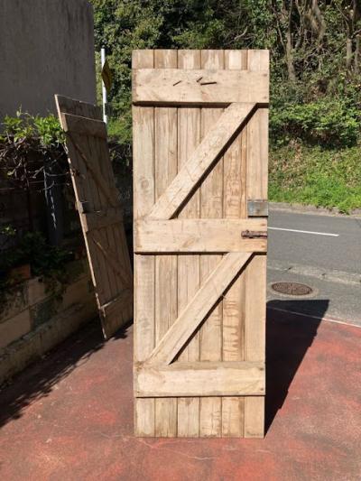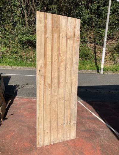 イギリスの古い納屋や倉庫、勝手口で使われていた素朴な雰囲気のパインドア。【42-122-2】重厚感のあるカチッとした造りのドアとは違い、ナチュラルなテイストが好まれ、イギリスでもリフォームやリノベーションを行う際には、室内にこのようなコテージドアを使用することもあるそうです。お部屋の壁面に立てかけインテリアのアクセントや撮影などの背景に、テーブルの天板にして店舗のディスプレイ台に使ったりと、、、様々な場所で活躍しそうですね。全体的に風にさらされ色褪せた風合いに加え、裏面にはダイナミックに大きなクギが3本刺さっていますが、あえてそのままにしてあります。丁番、専用の鍵は付属していません。取り付けをお考えの方はご自身の契約されている施工業者さまにお問合せください。推定1950年代の古びた木材ですので、ピカピカの新品をお求めの方はご遠慮ください。福岡市南区の店舗にてお渡しもできますのでお気軽にどうぞ!