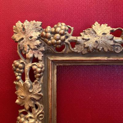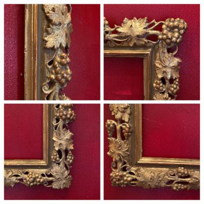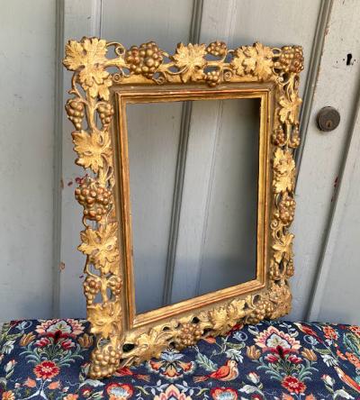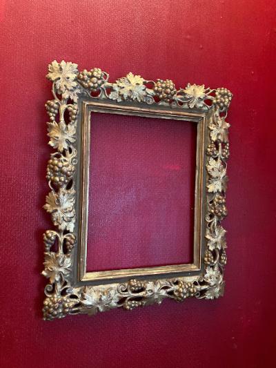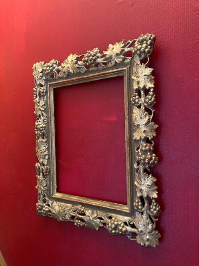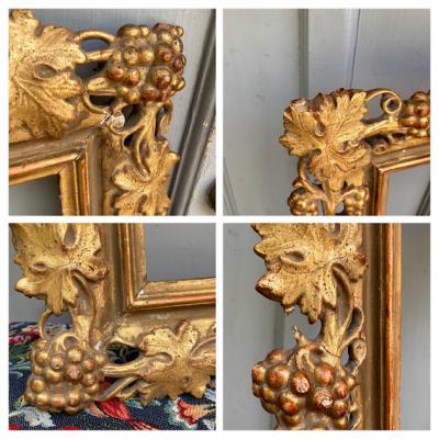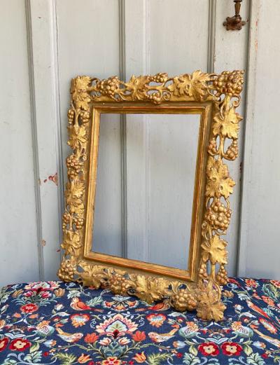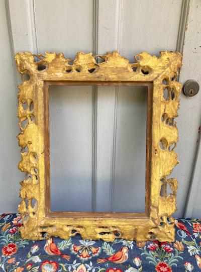 鈍いゴールドで彩られた美しいアンティークフレームが入荷しました。現地セラーによると、イギリスから入荷しましたが、額を取り囲むデザインの豪華さから18世紀後期頃フランスやイタリアで製造されイギリスに渡ったものではないか?とのことでした。ベースは木彫りでその上に石膏を使用し細やかなデザインを創り出しています。パーツが外れてしまった箇所や経年によりヒビはありますが、全体的なイメージは崩れてはおりません。裏面には何度も絵画を入れ替えた際に開いた小さな穴があります。画像を拡大してご覧ください。絵画やお花をはめ込んで壁面の装飾にしても素敵ですし、このままでも十分華やかな空間を創り出してくれそうです。ご自宅や店舗、撮影スタジオなど壁を彩るフレームをお探しの方におすすめ。磨いてしまうとこの風合いを損ないますので、細かいブラシでホコリのみ払っております。ピカピカの新品をお求めの方はご遠慮ください。福岡市南区の店舗にてお渡しもできますのでお気軽にどうぞ!こちらは送料無料にてお求めいただけます。