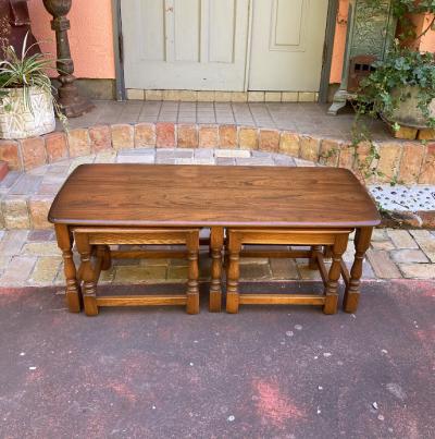 使い勝手のよいアーコール(ERCOL)のネストテーブル。大きさの違う3つのテーブルをフレキシブルに組み合わせて使用することができます。一つはソファの前に、一つはサイドテーブルや寝室のナイトテーブルに使って、来客が多い時は組み合わせて使うなど自由自在。店舗などではディスプレイ台としてもいいですね。使わない時は一番大きなテーブルの下にすっきりと収納できます。1970年代のビンテージ品となりますので、長い間にできた小さな傷や凹みなども風合いとしてお楽しみください。ピカピカの新品をお求めの方はご遠慮ください。福岡市南区の店舗にてお渡しもできますのでお気軽にどうぞ!