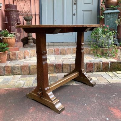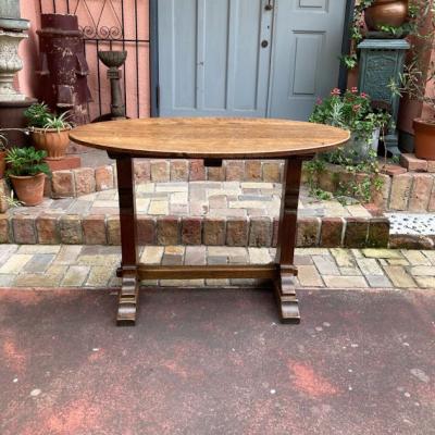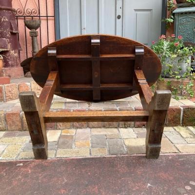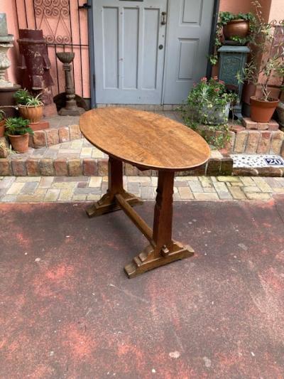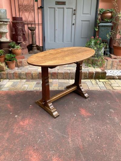 全長が約106㎝ほどの小ぶりな楕円形テーブル【42-39】推定1940年代、イギリス製。オーク材のしっかりとした造りは安定感があり、狭いスペースでも印象的な空間を創り出せそうです。椅子はもちろんのこと、スツールとの相性も良いようです。天板のフチも丸くカットされているので、手などをぶつけても安心ですね。ご自宅や店舗などでちょっとしたカフェスペースを作りたくなるお品です。一人でも移動できる重さです。撮影に使用したスツール椅子は付属しません。(店舗で販売してます)福岡市南区の店舗にてお渡しもできますのでお気軽にどうぞ!