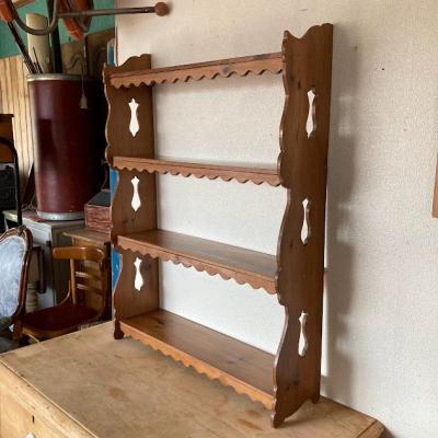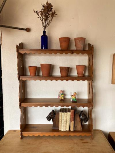 横幅が約60㎝ほどの小さなオープンブックケース【42-117】比較的小さなサイズ感の棚ですので壁に掛けて使用してもいいですね。推定1950年代、イギリス製。3段の棚がありますが、微妙に棚板間のサイズが違うように造られていました。お気に入りの小物を厳選して飾りたくなりますね!軽く移動しやすい棚をお探しの方や、店舗のディスプレイ什器をお探しの方にもおすすめです。ビンテージらしい傷などを含みますので、ピカピカの新品をお求めの方はご遠慮ください。イギリスで使用している壁掛け用フックを付属しておりますので福岡市南区の店舗にてお渡しもできますのでお気軽にどうぞ!