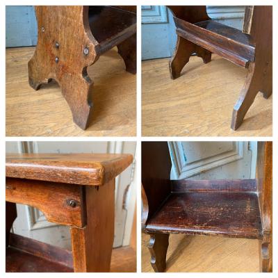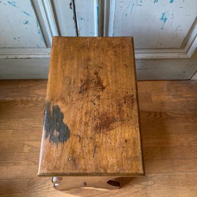 椅子としてはもちろんのこと、サイドテーブルや花台など何役もこなしてくれそうなオルガン椅子が入荷しました。イギリス製、推定1940年代、オーク材。メンテナンスをくり返しながら多くの人を支えていたようで、内側はやや艶のある塗装が施されています。外側は経年による剥がれがありますが、あえてそのままに当時の雰囲気を残してあります。座面にインクをこぼしたような跡も、何か物語を語っているようでワクワクさせてくれますね。キッチンの片隅や、玄関、リビングのお客様が来た時のスツール、お店の什器など様々な場所におすすめです。レトロで存在感のある椅子がお好きな方へ、ピカピカの新品をお求めの方はご遠慮ください。福岡市南区の店舗にてお渡しもできますのでお気軽にどうぞ!