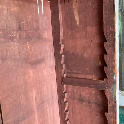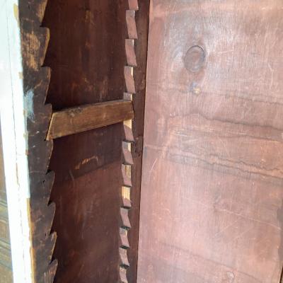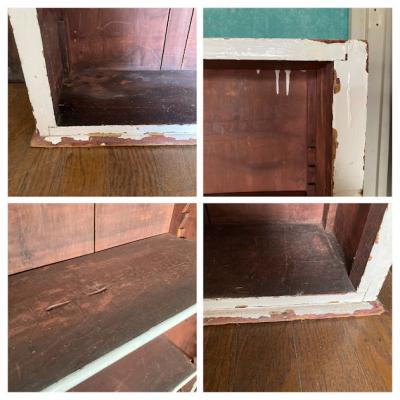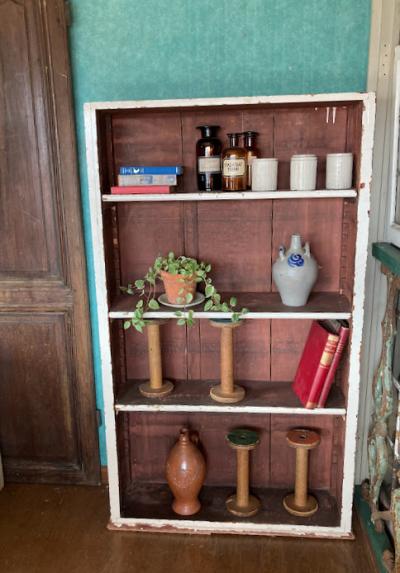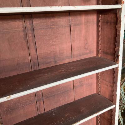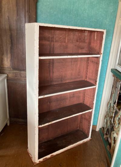 ホワイトとブラウンのコントラストが素敵なオールドパインのブックケースが入荷しました。イギリス製、推定1940年代。棚板の高さを調整する刻みが細かく入っているため、お気に入りの高さに調整することができます。調整を行うときは、左右に付属している台形の木製パーツを三角形の角に入れて調整を行います。棚板は3枚付属。すべて取り外すことも可能です。外側はホワイトにペイントされ、ペンキの剥がれた部分がありますが、使い込まれた佇まいがとても素敵です。お部屋の雰囲気に合わせてお好きな色にペイントしてもいいですね。お気に入りのアイテムを飾る棚や、お店のディスプレイ棚をお探しの方におすすめ。福岡市南区の店舗にてお渡しもできますのでお気軽にどうぞ!