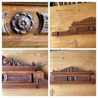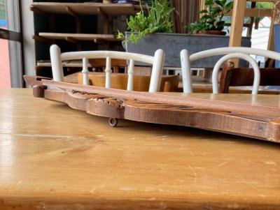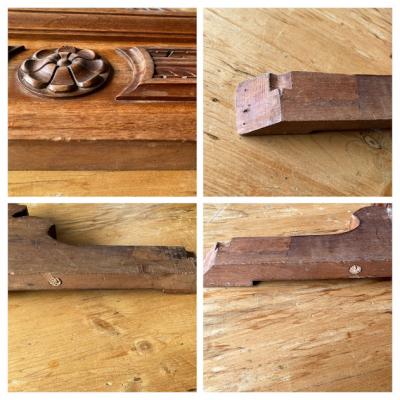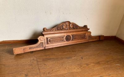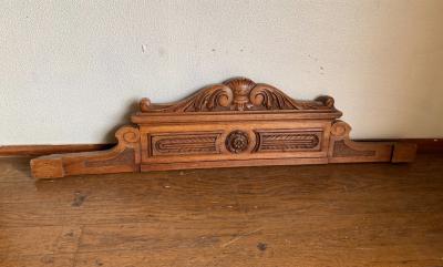立体的な彫刻が美しいフランスの家具パーツ(モールド)入荷しました。【41-190】キャビネットなどの上部に装飾用として使用されていたとのこと。フランス製、年代不詳、ウォールナット。裏面に丸い金具が付属していました。自立はできませんので、立てかけるか金具などで固定してお楽しみください。お手持ちの家具の上部に飾りとして取り付けてもいいですね。お好きな色にペイントしたり、どこに取り付けるか考えるとワクワクしますね。古木の持つ雰囲気がお好きな方、店舗の装飾パーツをお探しの方におすすめ。福岡市南区の店舗にてお渡しもできますのでお気軽にどうぞ!