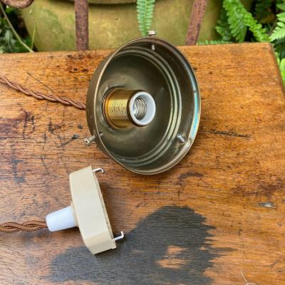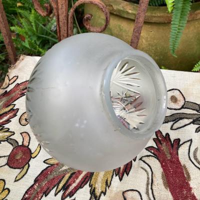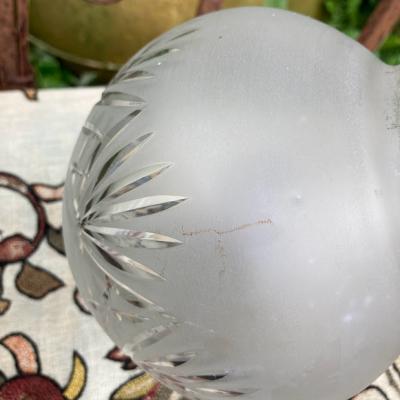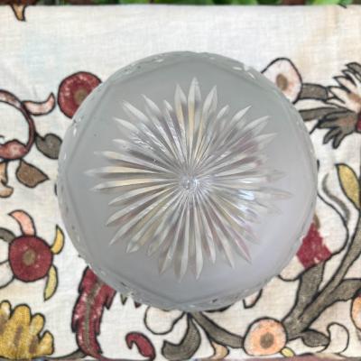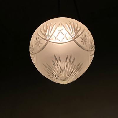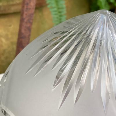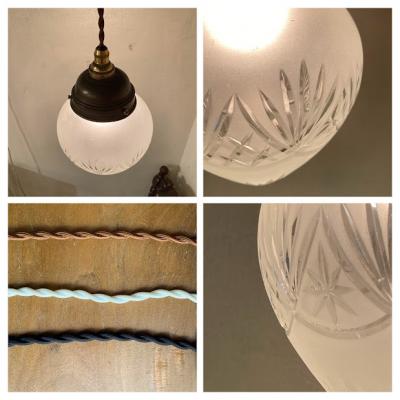 イギリスの昔ながらの技術で作られたカットガラスのシェードが新しく入荷しました。【41-195】細かく切り込まれた模様が1930年代の雰囲気を感じさせます。ガラスの中に光が閉じ込められてやさしく部屋を照らしてくれます。くもりガラスとカットガラスのコントラストも美しい光と影を作り出し、落ち着いた時間を過ごしたいお部屋にぴったりの照明ですね。上部ギャラリーで隠れる部分に少しカケでいる箇所がありますが、金具で見えませんのでご安心ください。アンティーク商品ですので、ガラス内に小さな気泡や経年による擦り傷を含みます。コードの色は、ブラック・ブラウン・ホワイトからお好みでお選びいただけます。長さも50㎝から1mまでお好きに調整できますので、ご希望の方はお申し付けください。特にご希望がない場合は撮影に使用しているコード色:ブラウン・長さ約50㎝にてお届けします。1m超える長さにつきましては別途有料となりますのでお問合せください。口金はE17に交換済み、LED電球対応
