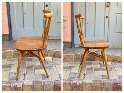 コンテナ入荷に伴い在庫商品をお値下げ中!アーコールで人気のクロスバックチェアです。【42-62D】エックスバックやラティスバックとも呼ばれるすっきりとしたデザインは、テレビCMやドラマなどでもよく使用されているため一度は目にしたことがある方も多いと思います。目を凝らしてみると、ビンテージらしい小さな傷や凹凸はありますが、それらがかえって味わい深い雰囲気を出しています。こちらは背もたれの部分を現地で補修した跡、座面に小さな傷があります。拡大した画像をご覧ください。シールはありませんでしたが、底に1960 205の刻印が入っています。これからの生活を共に過ごす椅子をお探しの方や、撮影小物、店舗用の椅子をお探しの方におすすめ。ピカピカの新品をお求めの方はご遠慮ください。福岡市南区の店舗にてお渡しもできますのでお気軽にどうぞ!