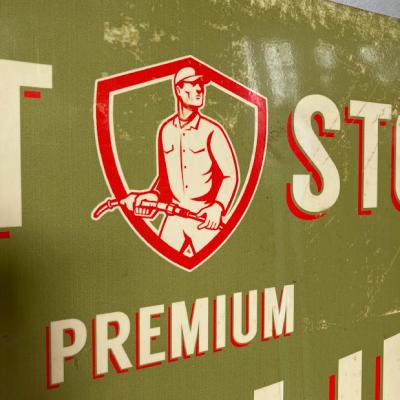 イギリスで道路標識として使用されていたサインです。推定1970年頃のリプロダクションとのこと。レトロでスタイリッシュなデザインは、車好きの方の雰囲気づくりにぴったりです。A4サイズの紙よりもずっと大きく、壁に飾ると目を引きますよ。店舗などの壁面装飾としても活躍しそうです。4つの端に固定用の穴が空いていますが、右上、左下部分は少しねじれがあり、全体的にビンテージらしいサビなども含みます。大きなサイズとなりますのでサイズをご確認の上ご注文ください。福岡市南区の店舗にてお渡しもできますのでお気軽にどうぞ!