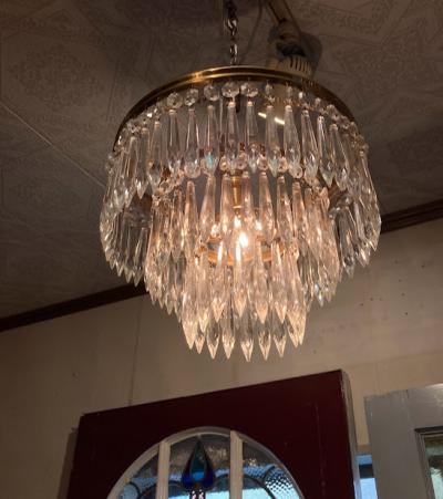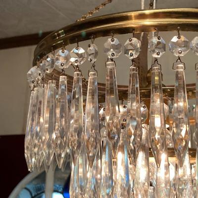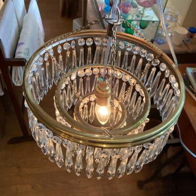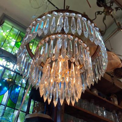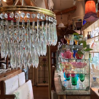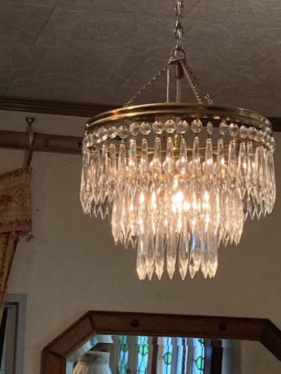 ガラスの輝きが空間を彩る、フランス製のシャンデリアが入荷しました。直径約27㎝と小ぶりなサイズながら、繊細なデザインとキラキラと煌めく佇まいがとても魅力的です。年代不詳。日本の電球(口金サイズE17)にも対応しており、LED電球で省エネもできますね。(撮影は白熱球25Wを使用)お部屋に華やかさと優雅さを添える、素敵な照明をお探しの方におすすめ。一つ一つのパーツはワイヤーで引っ掛けてあるだけなので、輸送時に外れることがあります。