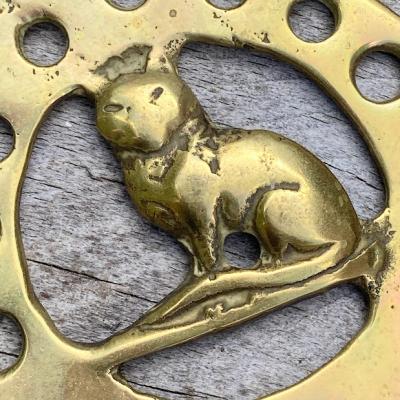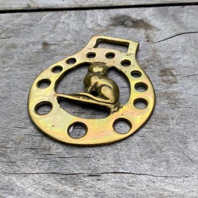 ホースブラス(HORSE BRASS)とは馬の額や首に飾るために使われていた真鍮製の飾りです。魔除けやラッキーアイテムとしてイギリスではパブや暖炉のそばに多く飾られています。ビクトリア時代には馬だけでなく、様々な動物、妖精、人物などのモチーフが作られました。重さがあるので、ペーパーウエイトとして使ったり、バッグにつけたり、家具にはめ込んだり、と自由な発想で楽しんでください。こちらは品番【43-183-F】CAT となります。