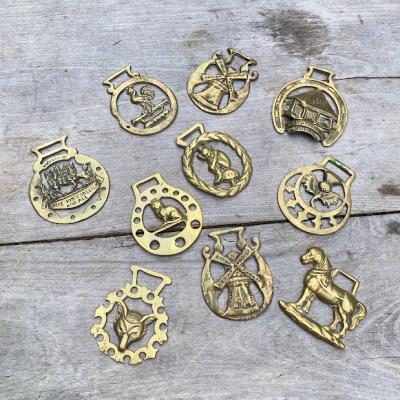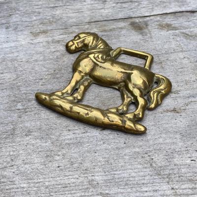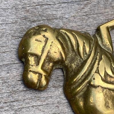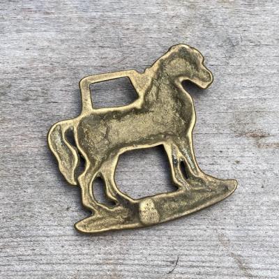 ホースブラス(HORSE BRASS)とは馬の額や首に飾るために使われていた真鍮製の飾りです。魔除けやラッキーアイテムとしてイギリスではパブや暖炉のそばに多く飾られています。ビクトリア時代には馬だけでなく、様々な動物、妖精、人物などのモチーフが作られました。重さがあるので、ペーパーウエイトとして使ったり、バッグにつけたり、家具にはめ込んだり、と自由な発想で楽しんでください。こちらは品番【43-183-B】HORSEとなります。