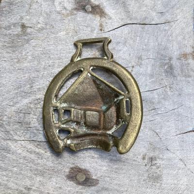ホースブラス(HORSE BRASS)とは馬の額や首に飾るために使われていた真鍮製の飾りです。魔除けやラッキーアイテムとしてイギリスではパブや暖炉のそばに多く飾られています。ビクトリア時代には馬だけでなく、様々な動物、妖精、人物などのモチーフが作られました。重さがあるので、ペーパーウエイトとして使ったり、バッグにつけたり、家具にはめ込んだり、と自由な発想で楽しんでください。こちらは品番【43-183-A】HOUSEとなります。