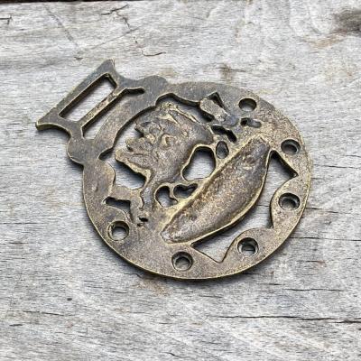 ホースブラス(HORSE BRASS)とは馬の額や首に飾るために使われていた真鍮製の飾りです。魔除けやラッキーアイテムとしてイギリスではパブや暖炉のそばに多く飾られています。ビクトリア時代には馬だけでなく、様々な動物、妖精、人物などのモチーフが作られました。重さがあるので、ペーパーウエイトとして使ったり、バッグにつけたり、家具にはめ込んだり、と自由な発想で楽しんでください。こちらは品番【43-183-D】UNCLE TOMとなります。