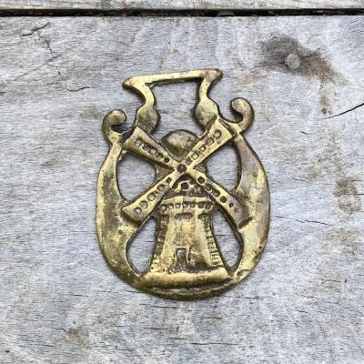 ホースブラス(HORSE BRASS)とは馬の額や首に飾るために使われていた真鍮製の飾りです。魔除けやラッキーアイテムとしてイギリスではパブや暖炉のそばに多く飾られています。ビクトリア時代には馬だけでなく、様々な動物、妖精、人物などのモチーフが作られました。重さがあるので、ペーパーウエイトとして使ったり、バッグにつけたり、家具にはめ込んだり、と自由な発想で楽しんでください。こちらは品番【43-183-J】windmill②ととなります。