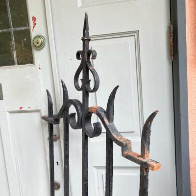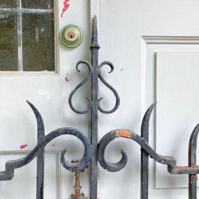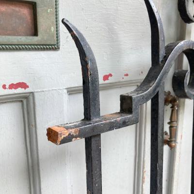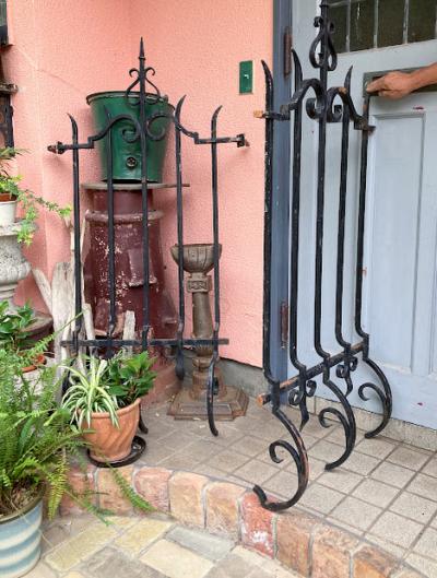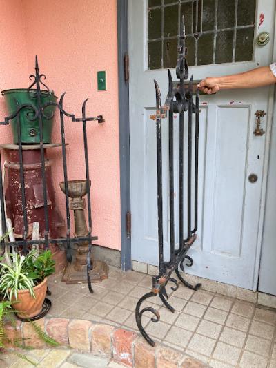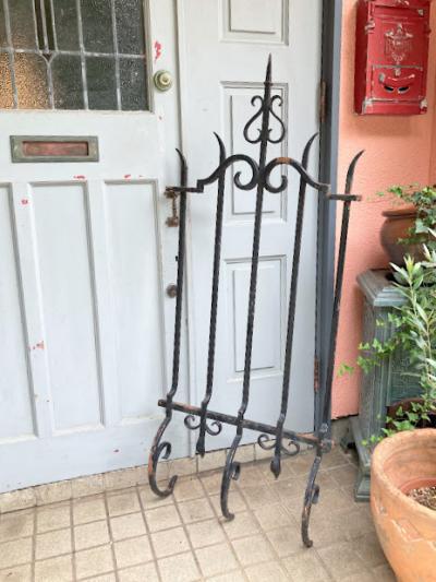 直線と曲線を組み合わせた優雅なフェンスがフランスから届きました。【43-504A】パリの邸宅で使用されていたとのこと。推定1930年代曲線美と華やかさが魅力のこのフェンスは、左右がカットされています。壁面に取り付ける場合は、別途市販の金具を使用してご利用ください。そのまま立てかけても壁面の装飾に一役買ってくれそうです。サビなども含め時代を感じる雰囲気がお好きな方におすすめ。先端が尖っており、重量がありますので持ち運ぶ時はご注意ください。