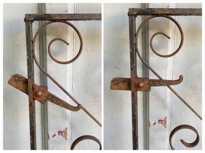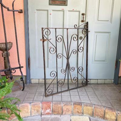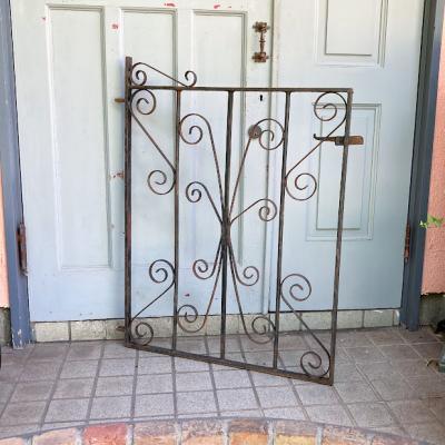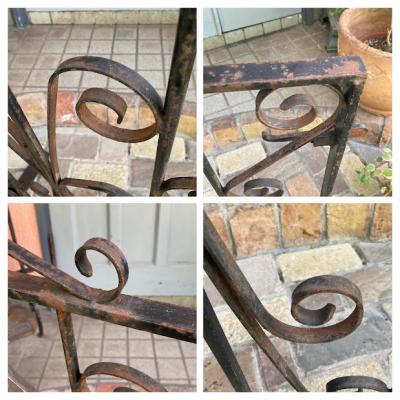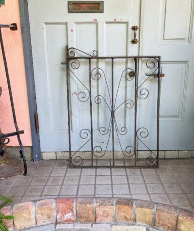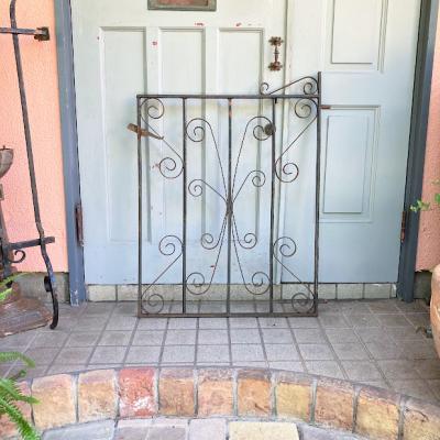 英国の庭で使用されていた低めのアーチゲート【43-76-2】四角の中に曲線を組み合わせたデザインは、ヨーロッパらしく華やかな印象です。こちらは高さ約94cmほどの低いタイプですので、一人での移動もしやすいサイズ。気分に合わせて室内の壁面に設置しても素敵ですよ。アンティーク特有のサビや傷なども含みますが、植物との相性はピッタリです。レバーは上下に可動し、サイドには固定用の穴が2カ所付属しております。福岡市南区の店舗にてお渡しもできますのでお気軽にどうぞ!