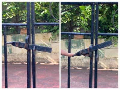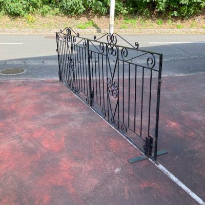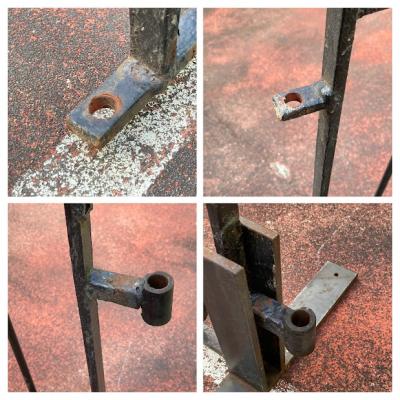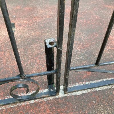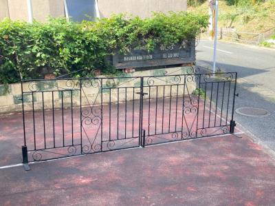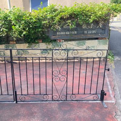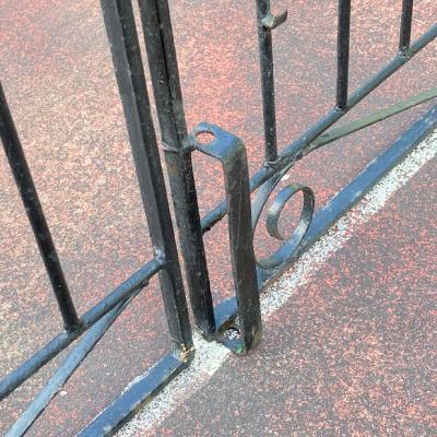 お庭や玄関を華やかにしてくれる両開きのアイアンゲートが届きました。【42-102】イギリス製、推定1930年代。左右には固定用の穴が開いたパーツが付属。ペイントの剥がれやサビを含みますが、時代を経た独特の存在感を創り出してくれます。ブルーやホワイト、グリーンなどお好きな色にペイントしてもいいですね。中央にある下に固定するストッパーは付いていませんでした。オーダーで場所に合わせて造られていますので、左右のフェンス幅は約12㎝ほど違います。撮影に使用したスタンドは付属しません。スタンドが必要な方には、別途オーダー(1~2週間)で作成できますのでお気軽にお問合せください。つる性の植物を絡ませても素敵ですよ!