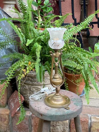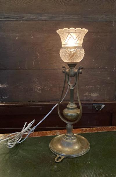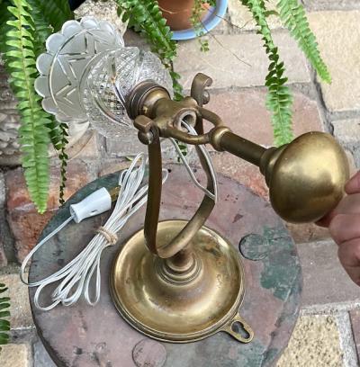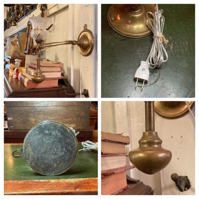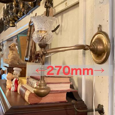 真鍮製の2WAY照明が届きました。推定1930年代、フランス製。卓上スタンドとしても、壁掛け照明としても使える優れもの。おもりが動くとシェードの向きが変わるので、壁に掛けた時にも光が上に向かいます。電球はピン式のB22サイズで、コードは約250㎝の透明タイプ。エレガントで華やかな雰囲気を演出するのにぴったりです。このように形が変わる照明は珍しく、卓上でも使用できるのは便利ですね!福岡市南区の店舗にてお渡しもできますのでお気軽にどうぞ!