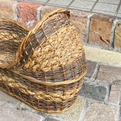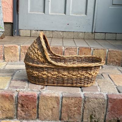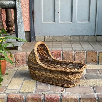 小さなお人形にぴったりサイズのベッドが届きました。【43-554-A】こちらは底が平らで安定感のあるタイプです。長い年月を経て、使い込まれた風合いが趣深く大切なお人形にも優しく寄り添ってくれます。違う素材で編みこまれたデザインは、凹凸が美しくこだわりが感じられます。玄関に置いてスリッパや小物、グリーンを入れてもいいですね。気分次第ですが、もしかしたら猫用ベッドとしても喜んでくれるかもしれません。1950年代、イギリス製。福岡市南区の店舗にてお渡しもできますのでお気軽にどうぞ!※撮影に使用した小物は付属しません。