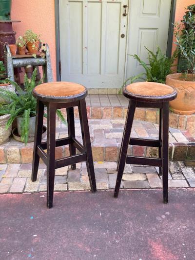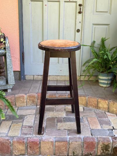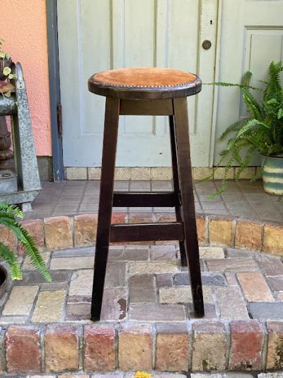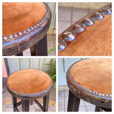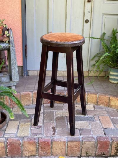 イギリスのパブで長年愛用されてきたハイチェアが届きました。【43-541A】推定1960年代。約81㎝という高さは、他の椅子と一線を画し、座るだけで気分が高まります。画像に写っているスツールは、高さ約46㎝と一般的な高さの椅子で比較してあります。がっしりとした造りは、時代を超えても安定感と耐久性を保ちます。座面のフチに打ち込まれた鋲は、カッコいいデザインのアクセントになっています。表面には経年による色の剥がれ、ざらつきを含みます。お部屋のイメージに合わせて色を塗り替えてもいいですね。同じデザインの椅子がもう一脚ありますので、ペアで揃えることもできます。キッチンカウンターやカフェ、バーなど高さのある椅子をお探しの方におすすめ。