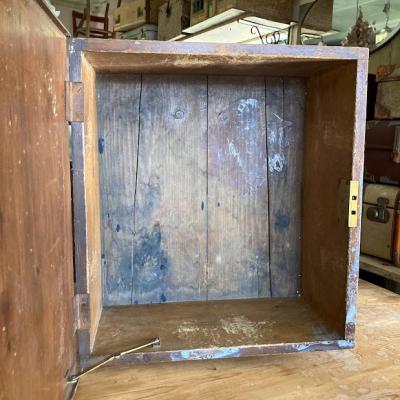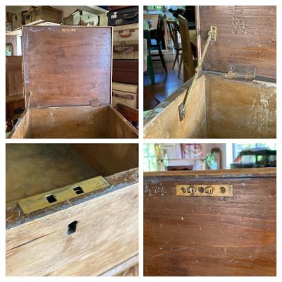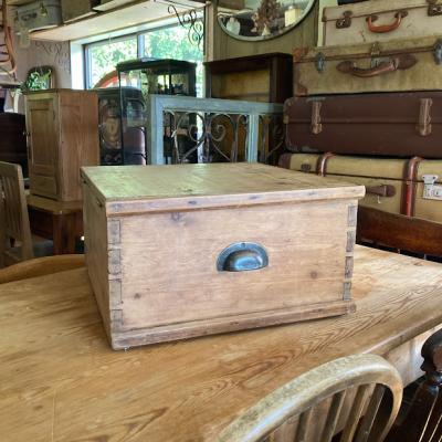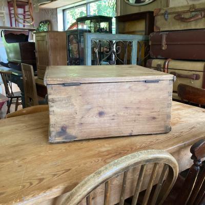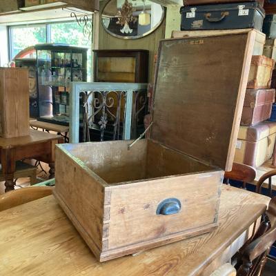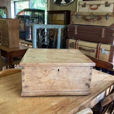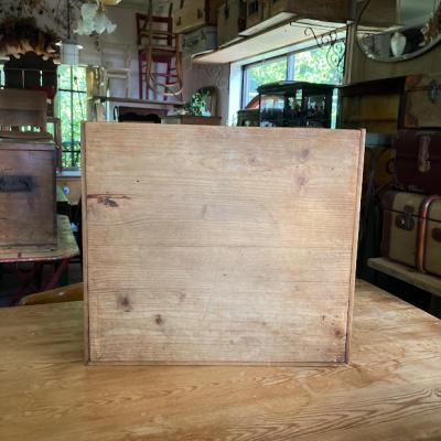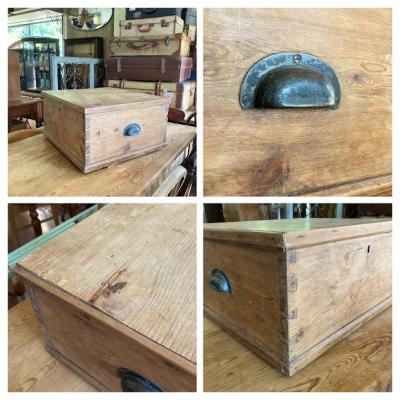 木目の美しいパイン材に、時代を感じさせる鍵穴や金具が施されているボックスが届きました。1930年代、イギリス製。鍵はありませんが、それがかえって味わいを増しています。蓋は開けたままにできるので、小物や飾りを入れておしゃれなディスプレイ棚としても使えますね。アンティークらしい魅力がぎゅっと詰まった箱に、大切な物を入れてご利用ください。雰囲気を残すためにピカピカには磨かず、ホコリのみ軽く拭き上げてあります。枯れた感じがお好きな方におすすめ。