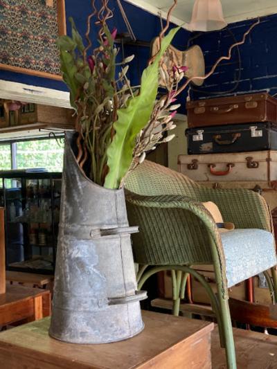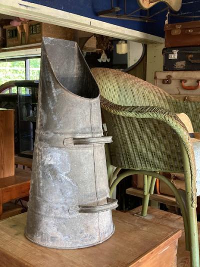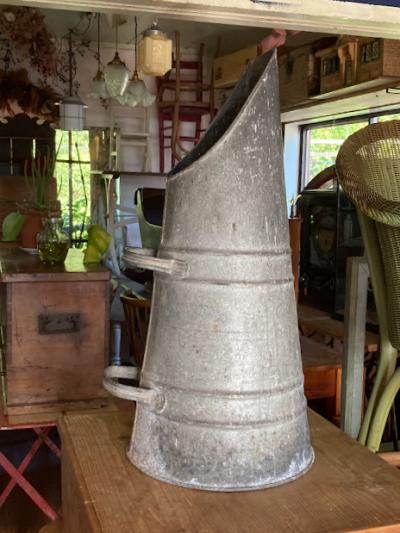 暖炉やキッチンで活躍していた石炭入れ(coal scuttle・coal box)が届きました。イギリス製、1960~70年代。【43-450】底に向かって太く安定感のある造りで、長い間生活と共に使われた形跡が味わい深いお品です。裏面に「BIRD BRAND」のロゴ入り。傘立てや鉢カバー、花瓶などさまざまな用途に使えそうですね!古道具独特の風合いがお好きな方におすすめ。