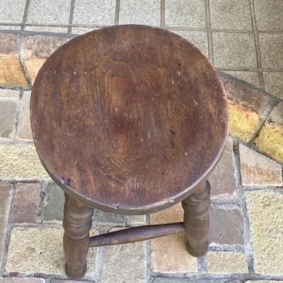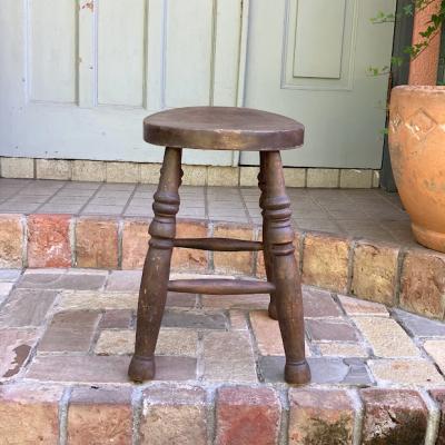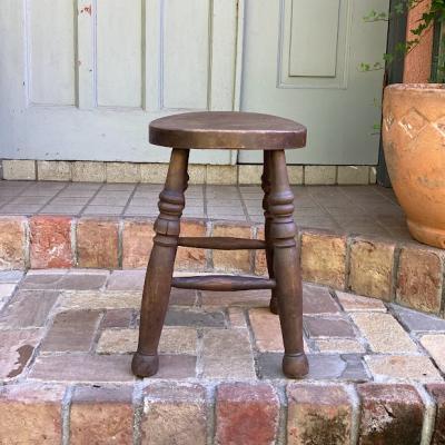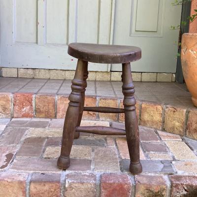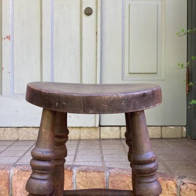 チョコレート色の深みのある色合いと厚みのある座面が特徴的なスツールが届きました。【43-468】1930年代、イギリス製、チーク材。横から見ると座面がくぼんでいて座りやすいよう工夫されています。ぽってりとした丸みのあるフォルムは、優しく温かい印象をあたえてくれます。小さな傷も含め、素材感を残すため乾拭きのみで仕上げた姿は、艶やかさではなく、落ち着きと味わいを求める方におすすめです。