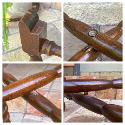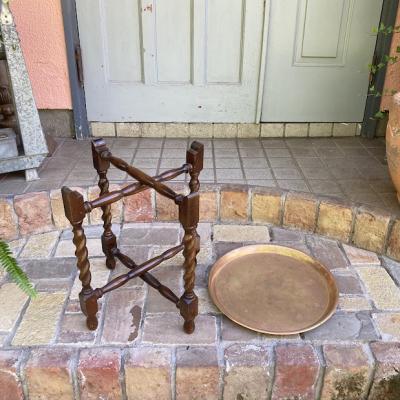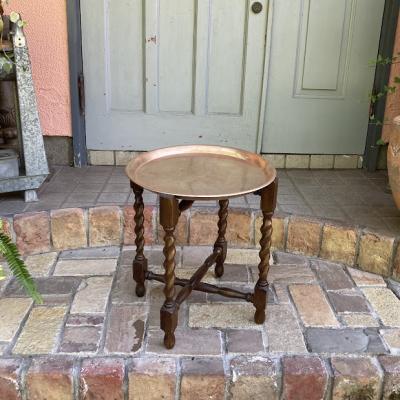 裏面にイギリスではおなじみのTRADE MARK LINTONのロゴが入った折り畳みができるテーブルが届きました。【43-403】脚はツイストレッグでクラシカルな印象。天板は脚のくぼみにちょこんと乗っているだけのシンプルな構造なので、どこへでも移動ができ、折り畳むとトレイを重ねても約10㎝ほどの厚みにできるので収納に便利ですね。構造上あまり重いものはおすすめできません。ちょっとしたディスプレイや、ベッドサイドやソファ横のテーブルとして、観賞植物の台などに。取り外した天板は大きめのトレイとしても十分使えます。長きに渡り大切に使われてきた証として、小さな傷や凹凸が見られます。持ち運びできるサイドテーブルをお探しの方や、来客時の一時的なテーブルとしてご利用したい方などにおすすめ。福岡市南区の店舗にてお渡しもできますのでお気軽にどうぞ!