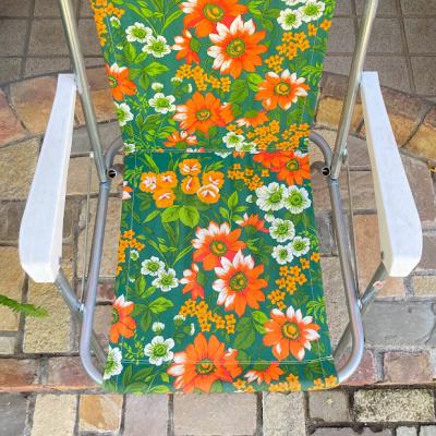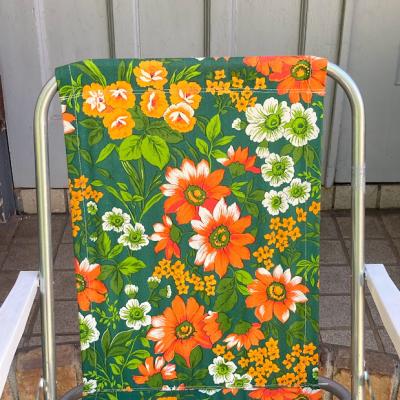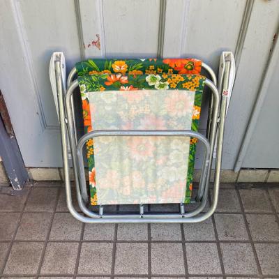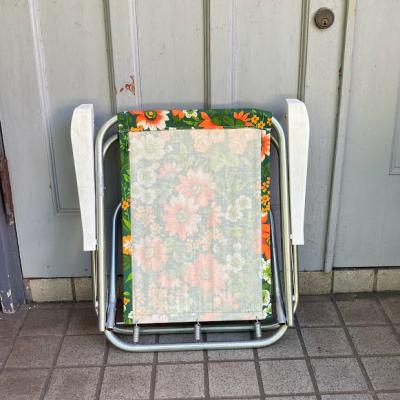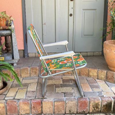 ビンテージの味わいたっぷりのフォールディングチェアが届きました。【43-306F】花柄のカラフルなカラーとデザインは、レトロな雰囲気を演出しながら、明るく楽しい気分にさせてくれますよ。お庭やベランダ、キャンプなどのアウトドアシーンにもぴったりです。折り畳めばコンパクトになり、移動や収納も簡単ですね。キャンパス生地で高さや39㎝と低めの座面は快適な座り心地を提供し、フレーム部分は経年変化による風合いが魅力的です。スムーズに開閉できるので、まだまだ実用的に使えるコンディションです。イギリス製、推定1960年代。福岡市南区の店舗にてお渡しもできますのでお気軽にどうぞ!