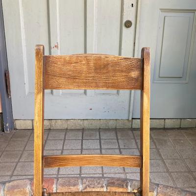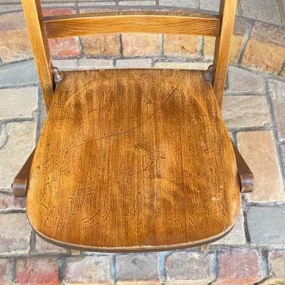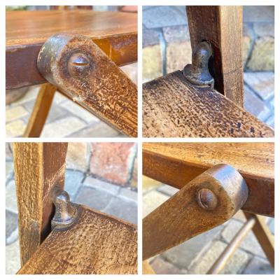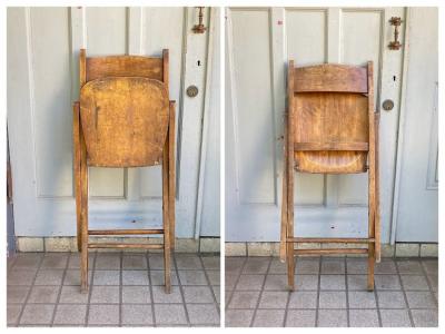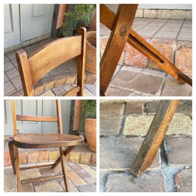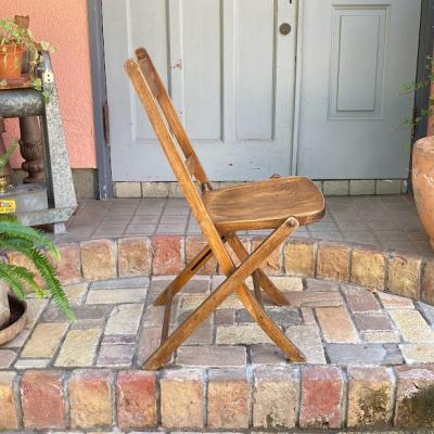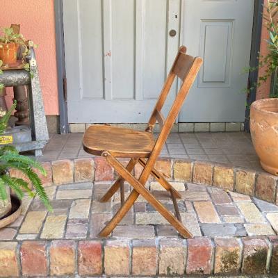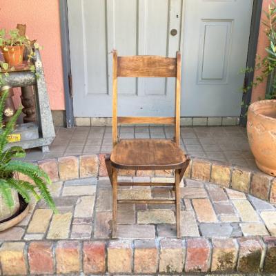 1940年代にイギリスで作られたこのフォールディングチェアは、長時間座っても疲れにくいよう、背もたれや座面にカーブを付けて設計されています。【43-349B】椅子で生活するヨーロッパらしいこだわりが感じられますね。また、椅子は常に開くような仕組みになっているので、折り畳んだときにも座面が開こうとします。これは椅子をすぐに使えるようにするための工夫だそうです。たたんだ状態で保管したい場合は、紐やマジックテープなどで留めておくといいでしょう。座面の高さは約43㎝とやや低いタイプですので、小柄な方やゆっくりとくつろぎたい場合にもいいですね。折り畳みもでき、くつろぎの時間を共に過ごす椅子をお探しの方におすすめ。こちらは同じデザインの物を販売しておりますが、木目と品番が違いますので画像にてご確認ください。