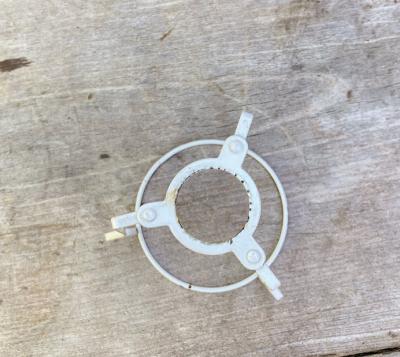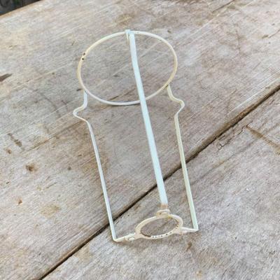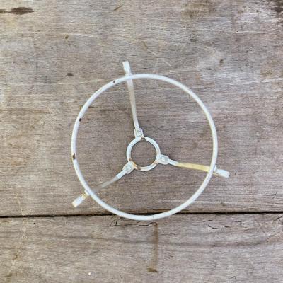 イギリスの大きなシェードに取り付けるランプシェードキャリー(ランプシェードキャリアとも言うそうです)【43-STP】。こちらは出っ張りのある所から下までの長さが約15㎝(6インチ)のサイズになります。円が広い方が上向きで、3カ所の飛び出ているところにシェードの中央の輪が乗る仕組みになっています。中古のお品となりますのでサビなどを含みます。大きなシェードをお持ちでパーツのみお探しの方向き。福岡市南区の店舗にてお渡しもできますのでお気軽にどうぞ!