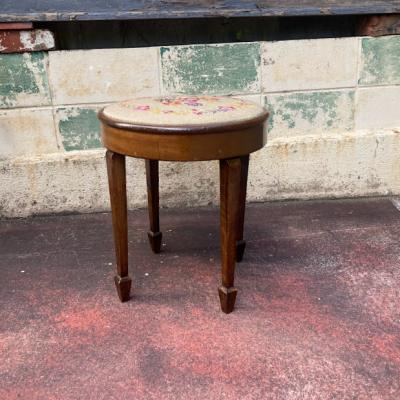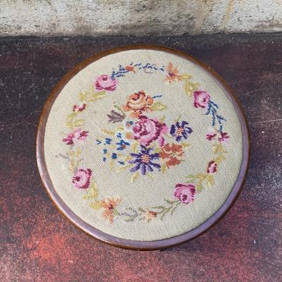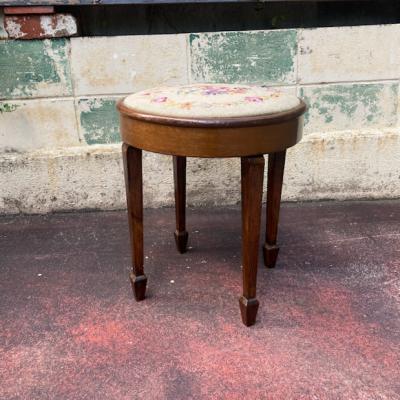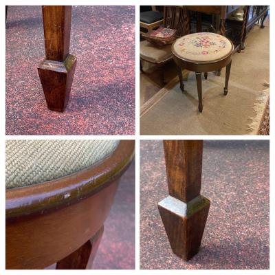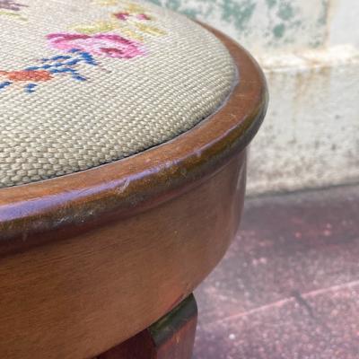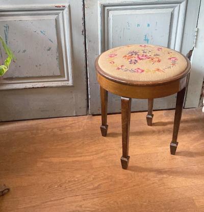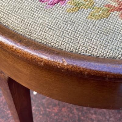 ゆったりと広めな座面に、色とりどりの美しい刺繍を施したスツールが届きました。【43-47】まるで絵画のような繊細さと華やかさです。フランス製、1940年代、ウォールナット。オリジナルの状態を保っており、時代を超えて輝き続けています。小さな傷や凹みがありますが、それもこの椅子の歴史と魅力の一部としてお楽しみください。