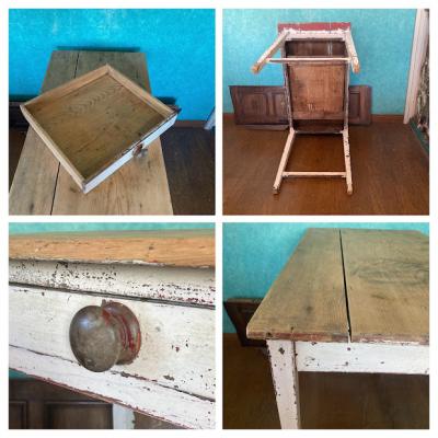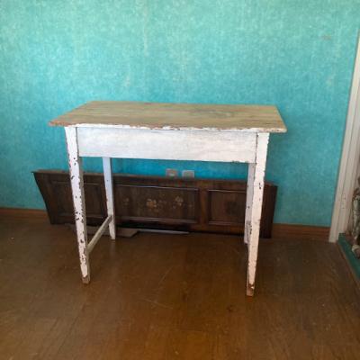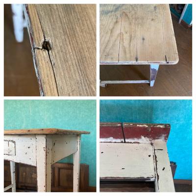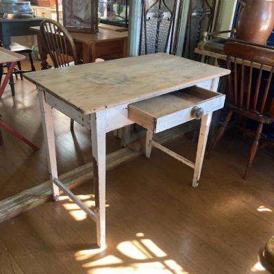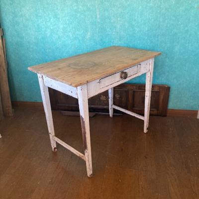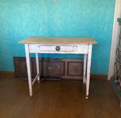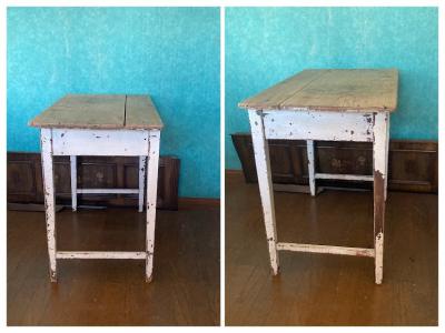時代を超えて愛される小さなデスクが届きました。【43-366】幅約92cmというコンパクトなサイズは、どんなお部屋にも馴染みます。中央の小さな引き出しは収納力だけでなく、デザイン性も高めています。天板は長年の使用によって味わい深い風合いになっており、ペイントの剥がれや傷も、このデスクの歴史を物語るものです。反射しにくい天板は、勉強や読書に最適ですが、小物の撮影背景としても活用できますね。推定1940年代、イギリス製。福岡市南区の店舗にてお渡しもできますのでお気軽にどうぞ! ※撮影に使用した椅子は付属しません。