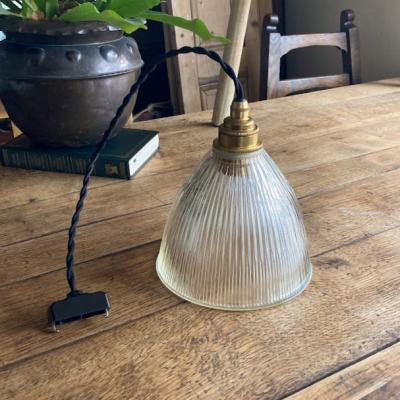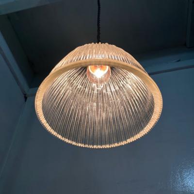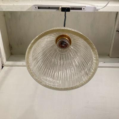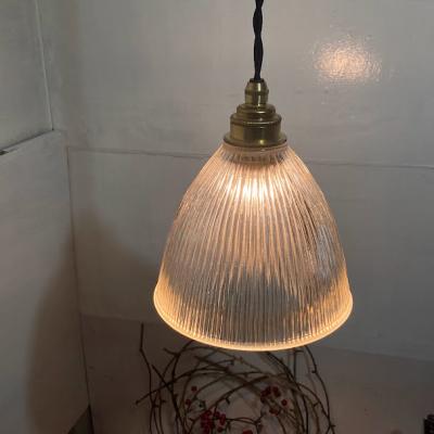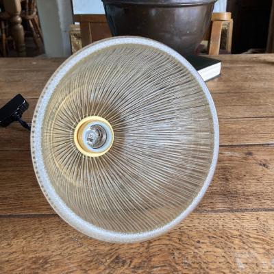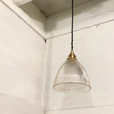 カットのおかげでキラキラ煌めくガラスシェードが届きました【F1-26】イギリス製、1970年代。やや厚みのあるガラスがしっかりとした印象をうける照明です。シンプルなデザインは、ガレージや北欧風のインテリアなどにもピッタリですね