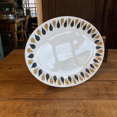 1967年以降にウェッジウッド社で製造されたディアブロ(Diablo)の大きなプレート【43-310-ov】ディアブロという単語はありませんが、このデザインから、小滴(biob)の連なりを意味する造語だそうです。スタイリッシュなデザインは現代のインテリアにもピッタリですね。フチのデザインに1カ所だけ剥がれた箇所が見られますが、非常にいいコンディションです。食器以外にもアクセサリートレイなどにも活躍します。福岡市南区の店舗にてお渡しもできますのでお気軽にどうぞ!