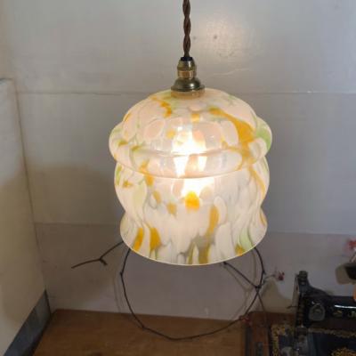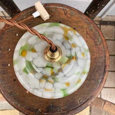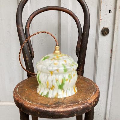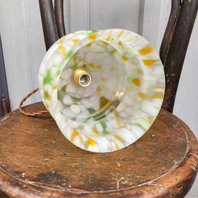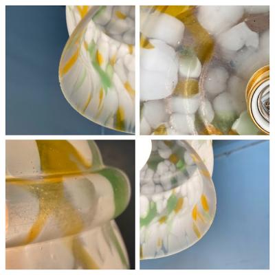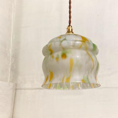 白、緑、黄色のガラスを組み合わせ、さわやかで明るい色合いのガラスシェードが届きました【43-285】イギリス製、推定1950年代。お部屋の雰囲気をぱっと明るくしてくれそうですね。古いガラスの特徴である気泡を多く含みます。