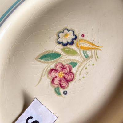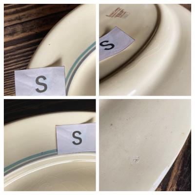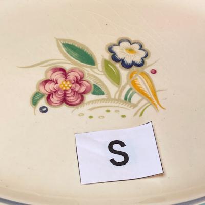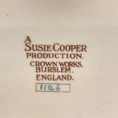 スージ―クーパー全盛期にクラウンワークス製陶器工場でデザインされた「Nosegay」シリーズ。【43-318-S】 香りの花束という意味でアールデコ調の花柄が特徴です。この当時(1932年)イギリス王室のメアリー王妃がスージーの食器を一目見て気に入り王室用の食器として購入したという素敵な逸話もあるようです。大きな割れなどはありませんが、アンティーク食器特有の貫入を含みます。貫入とは陶器と釉薬の縮みの差による網目状のことで、ヒビとは異なります。長い年月を経た証としてお考えいただければ幸いです。こちらの商品は一番小さなSサイズです。