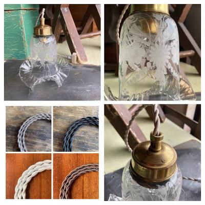 LED電球も使える、口金サイズE17の真鍮ソケットに加え、コードと角型シーリングは新しい物と交換してあります。撮影時コードはスモーキーベージュ長さ約44㎝を使用していますが、コードの色は「黒、白、茶色、スモーキーベージュ」の中からお好きな色に交換できます。コードのみの長さは調整可能、50㎝以上の場合は別途有料となりますのでお気軽にお問合せください。