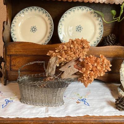繊細に編み込まれたワインバスケットが届きました【43-506】フランス製、推定1950年代。ワインボトルはもちろんのこと、季節のお花を飾っても素敵ですね。経年による色の変化を含みます。雰囲気を残すためピカピカにはしておりません。福岡市南区の店舗にてお渡しもできますのでお気軽にどうぞ!※撮影に使用した小物は付属しません。