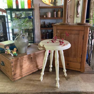 ペイントが時間を経て自然に剥がれシャビーシックな美しさを放つフラワースタンドが届きました【44-002】フランス製。推定1940年代。約39㎝高さは、花台以外にも低めのサイドテーブルとしても活躍しそうです。古き良きエレガンスの持つ独特の風合いは訪れる人の目を引き付けることでしょう。風合いを残すため軽く拭き上げるのみ行いました。福岡市南区の店舗にてお渡しもできますのでお気軽にどうぞ!