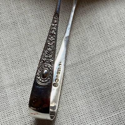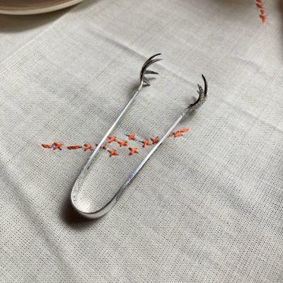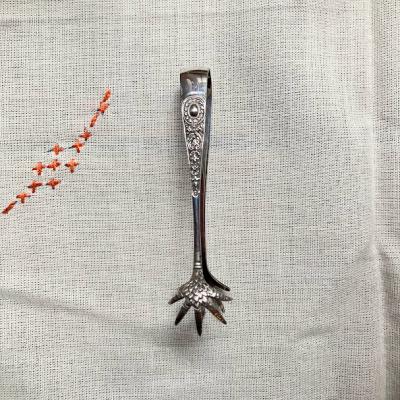 お茶の時間が楽しくなるシュガートングが届きました【43-539】鳥の足のようなデザインが立体的に造られており、しっかりとつかむことができます。内側にはシルバープレートの刻印あり。お砂糖以外にもお料理やお菓子を取り分ける小さなトングとして活躍しそうですよ。イギリス製、推定1930年代