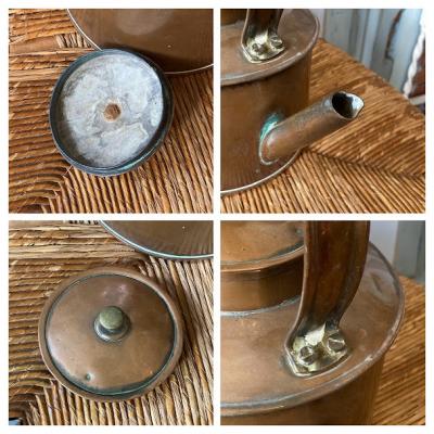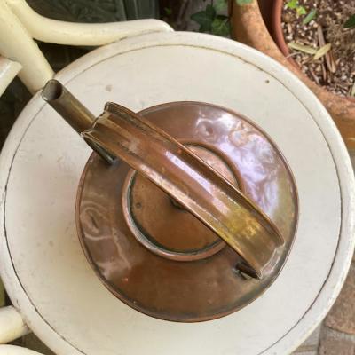 使い込まれたアンティークブロンズが素敵なケトルが届きました【43-322】水漏れはなく安定感のある形状は、使い勝手が良さそうです。古い銅の特徴である緑青がありますが、雰囲気を残すためそのままにしてあります。軽く拭き上げるのみ行いました。お花や植物との相性がとてもいいので、お部屋のアクセントやディスプレイなどに活躍しそうですね。注ぎ口先端に凹みがみられます。イギリス製、推定1930年代。
